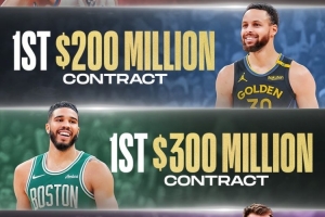 2024年,塔圖姆奪冠后5年3.13以續(xù)約綠軍,成為首個(gè)三億先生;