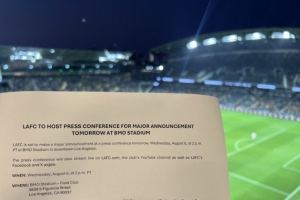 Justin Ruderman社媒曬出公告函,確認洛杉磯FC將在當地時間8月6日14點召開新聞發布會,屆時將宣布“重大消息”。