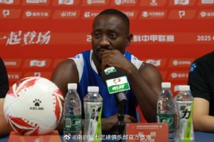 中甲第20輪南京城市主場迎戰陜西聯合月亮泊。今天晚上,南京城市主教練張曉峰攜隊員奧格布出席賽前新聞發布會。