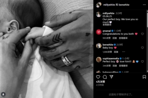 本-懷特妻子社媒寫道:“2025.6.5,我們的寶貝兒子,我們非常愛你??”阿森納官方社媒也在評論區為夫婦二人送上祝福。