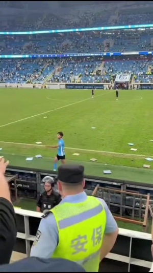 根據現場拍攝畫面,有情緒激動的球迷跳下看臺。