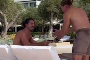 格拉利什近日疑似在希臘度假時被套路替陌生人買單,這位失寵的曼城球星結束漫長賽季后,正在希臘米克諾斯島的豪華度假村享受假期。瑞典網紅帕特里克-佩爾森在TikTok和Instagram發布的視頻顯示,他讓這位英格蘭國腳簽名的賬單實則是泳池餐廳的消費單。