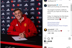 塞斯科社媒連發(fā)三條動態(tài),曬出與曼聯(lián)簽約的相關(guān)照片,表達自己的喜悅之情。