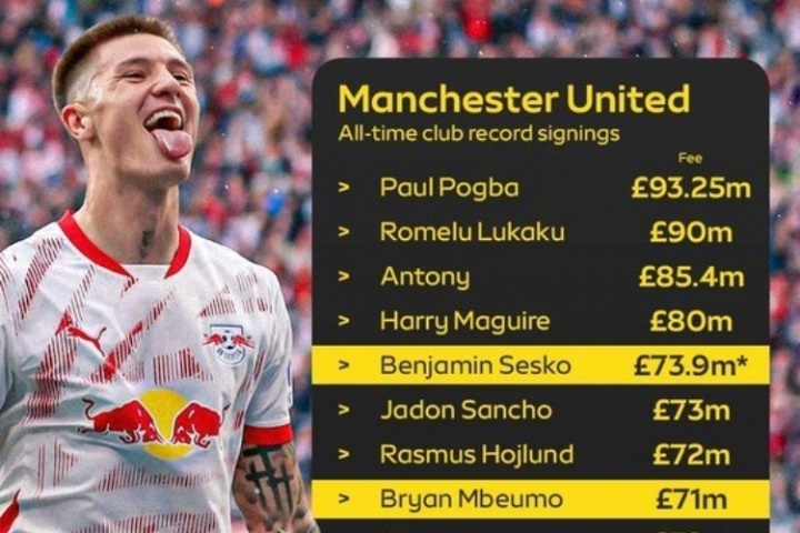 詹俊在社媒寫道:曼聯官宣斯洛文尼亞前鋒塞斯科加盟,轉會費近7400萬鎊,在俱樂部球員轉會身價榜上排名第五。紅魔新的鋒線三叉戟耗資近兩億,他們在原來的俱樂部表現都相當不錯:塞斯科上季有21球6助攻,姆貝莫20球8助攻,庫尼亞17球6助攻。加上他們身后還有隊長B費,相信任何對手的防線都將倍感吃力。