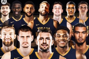 全歐洲球員陣容:東契奇、字母哥、約基奇、文班亞馬、小薩博尼斯、戈貝爾、小瓦格納、努爾基奇、博格丹、施羅德、申京。