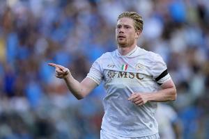 關于今天比賽為本隊攻入兩球的德布勞內
