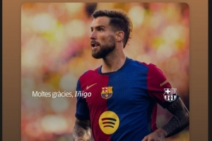 體育資訊8月10日訊 巴薩中衛伊尼戈-馬丁內斯自由身離隊,加盟利雅得勝利,巴薩門將特爾施特根更新社媒動態,與伊尼戈告別。