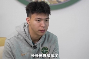 王鈺棟說道:“小的時候在深圳踢球,到了五年級之后基本上去了上海踢球,也沒有待多少年,后面去了臺州,慢慢就來綠城了。