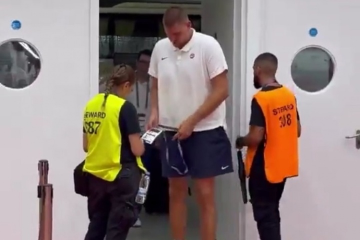 但是約基奇正常到球館觀戰,入場時掏出證件檢驗。