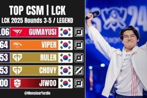 體育資訊8月11日訊 外媒Monsieur Yordle發布2025 LCK常規賽3-5輪至今分均補刀排名,具體如下。
