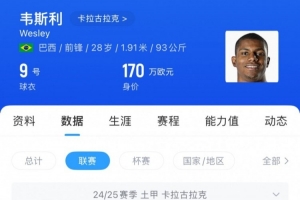 今年28歲的韋斯利身高1.91米,體重93公斤,屬于典型的高中鋒,在其職業(yè)生涯當中還踢過前腰,韋斯利曾在維拉、布魯日、斯托克城、萊萬特以及巴西國際效力,在前場有較好的沖擊力。