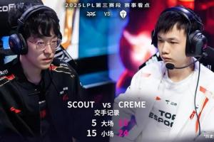 體育資訊8月13日訊 今日LPL第三賽段將迎來JDG對陣TES的比賽,賽前官方直播間給出了Scout vs Creme歷史交手記錄:大場5-10,小場15-24!