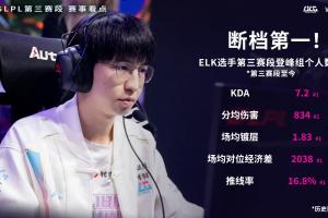 體育資訊8月13日訊 今日LPL第三賽段將迎來AL對陣BLG的比賽,賽前官方直播間給出數據:Elk選手第三賽段登峰組個人數據斷檔第一!