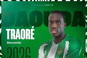 達(dá)烏達(dá)-特勞雷現(xiàn)年19歲,法國中場,去年夏天從尼斯加盟南安普頓,上賽季外租瓦朗謝納效力,共為該隊出戰(zhàn)27場法丙。今天,南安普頓官方宣布,達(dá)烏達(dá)-特勞雷租借加盟西甲貝蒂斯,租期一個賽季。