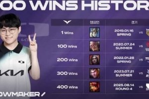 ShowMaker:(400勝里)首先第一場我很緊張,還有在第一個100勝里建敷(Canyon)用豹女收獲了LCK首個打野五殺,有點(diǎn)印象深刻.