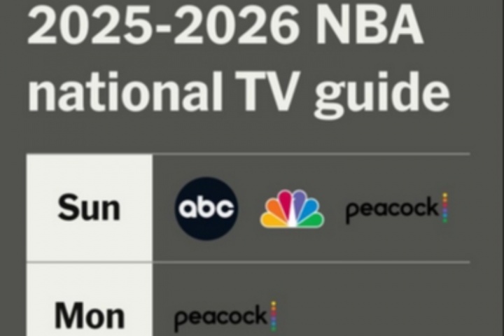 2025-26賽季的全美直播比賽將通過ESPN、NBC、ABC、Peacock、Prime等平臺播出。
