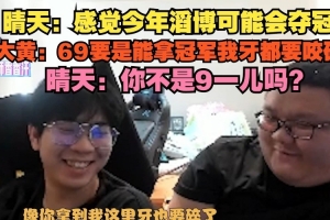 晴天:感覺今年滔博可能會奪冠,大黃:69要是能拿冠軍我牙都要咬碎,晴天:你不是9一兒嗎?