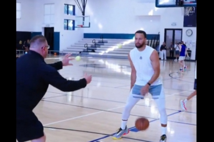 胯下運球中扔接網球,隨后投射