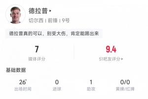 賽后,德拉普獲得了7分的媒體評分。