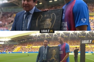 體育資訊8月18日訊 在南特對陣巴黎的首輪法甲聯賽開始前,南特主席向巴黎贈送了特別的禮物。