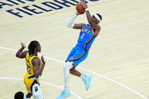 體育資訊6月17日訊 NBA總決賽G5,雷霆半場59-45領先步行者。