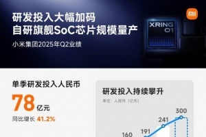 小米手機、汽車、空調家電等業務都獲得大幅增長,表現優異。與此同時,小米也在加大研發投入力度,本季度研發投入78億元,同比增長41.2%,預計今年投入300億元。