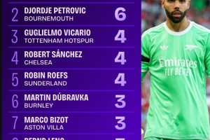 以下為英超首輪撲救次數top10:
