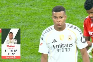 全場比賽結束,姆巴佩當選皇馬西甲首輪全場最佳球員。