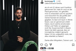 體育資訊8月20日訊 法蘭克福門將特拉普加盟巴黎FC,特拉普社媒發文,與法蘭克福告別。