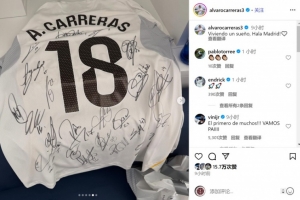 今夏加盟皇馬的A費(fèi)此役踢滿全場(chǎng),幫助球隊(duì)取勝,他在社交媒體上曬出首秀球衣,上面簽滿了隊(duì)友的名字。