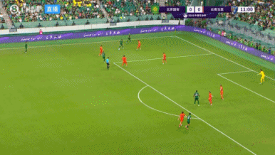 比賽第12分鐘,國安左路進攻傳中,楊立瑜點球點附近頭球攻門,馬鎮撲了一下后二次反應將球拿住。