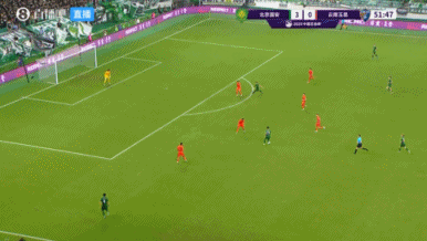 比賽第52分鐘,國安進攻,塞爾吉尼奧禁區右側橫掃門前,林良銘包抄擊中門柱彈出。