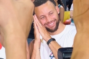 輸了也開心!庫里滿臉笑容與三分絕殺的中國球員一起比晚安!