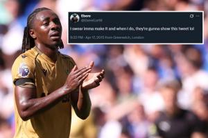 太陽報表示,16歲的埃澤當時剛剛被米爾沃爾解約,在2015年4月他發布了這條社媒:我發誓我一定會成功的,等我成功了,他們肯定會把這條推文找出來的,哈哈。