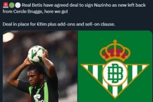 體育資訊8月22日訊 名記羅馬諾Here We Go確認(rèn),皇家貝蒂斯即將600萬歐元簽下色格拉布魯日邊后衛(wèi)弗拉維奧-納齊尼奧。