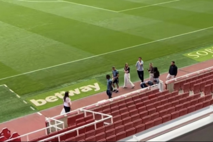 球迷曬出水晶宮球星埃澤出現在阿森納主場酋長球場,據此前羅馬諾報道,這位27歲的攻擊手轉會費超6000萬鎊。