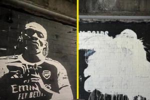 但僅僅在完工后兩天,這幅壁畫(huà)就遭到破壞。壁畫(huà)的創(chuàng)作者Northbanksy也在社媒發(fā)聲,他寫(xiě)道:這確實(shí)讓人惱火,所有的努力在瞬間化為泡影,有點(diǎn)像熱刺在埃澤轉(zhuǎn)會(huì)上的遭遇!我們很快就會(huì)卷土重來(lái)!
