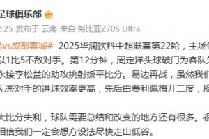 體育資訊8月23日訊 在中超聯(lián)賽第22輪中,云南玉昆主場(chǎng)1-5負(fù)于成都蓉城。由于球隊(duì)連續(xù)的大比分輸球,云南玉昆俱樂(lè)部也在賽后公開(kāi)致歉。