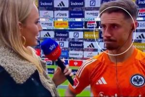 賽后的場(chǎng)邊采訪,天空體育的女記者將弗里德?tīng)栒`認(rèn)為法蘭克福球員,談到比賽時(shí)問(wèn)他對(duì)贏球是否滿意。弗里德?tīng)栃α诵Γ硎咀约簛?lái)自不萊梅而不是法蘭克福。記者非常尷尬,趕緊向弗里德?tīng)柋硎玖饲敢狻8ダ锏聽(tīng)杽t是做了個(gè)手勢(shì),似乎示意想結(jié)束此次采訪。
