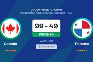 體育資訊8月24日訊 今天結束的一場男籃美洲杯小組賽,加拿大男籃99比49大勝巴拿馬男籃50分。