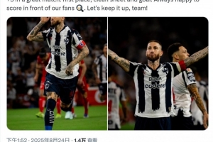 拉莫斯社媒曬出比賽照片,配文:“感覺真棒!在一場(chǎng)精彩的比賽中全取三分——榜首、零封和進(jìn)球,在我們的球迷面前破門總是很開心,讓我們繼續(xù)加油!”