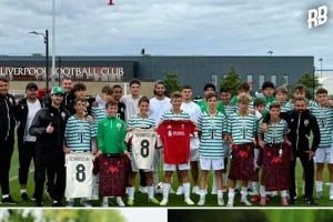 利物浦U15梯隊擊敗費倫茨瓦羅斯U15梯隊,晉級半決賽。賽后利物浦一線隊球員與費倫茨瓦羅斯的小球員們合影,并贈送球衣。