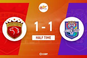 上半場傷停補時3分鐘,半場結束,上海海港暫1-1天津津門虎。