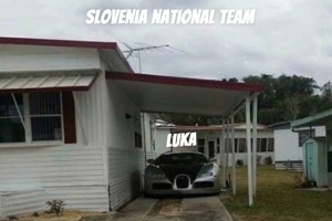 自媒體Luka Updates曬圖為歐錦賽預熱。圖中是一個破敗的小院中停著一輛豪車。豪車上面標注著“Luka”,而這個小院則被標注為斯洛文尼亞男籃。
