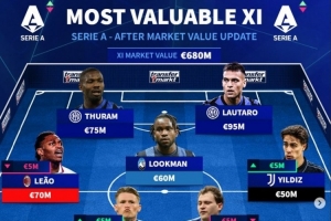 體育資訊6月17日訊 意甲球員德轉身價今日更新,德轉列出了意甲身價最貴陣,勞塔羅、小圖拉姆搭檔鋒線,麥克托米奈、伊爾迪茲、萊奧在列。