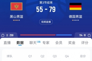 體育資訊8月27日訊 男籃歐錦賽小組賽,德國(guó)男籃三節(jié)79-55領(lǐng)先黑山男籃。