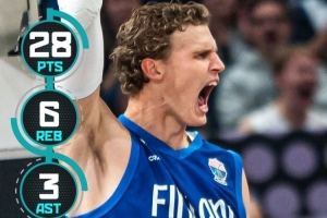 此役,芬蘭球星馬爾卡寧出戰(zhàn)32分23秒,投籃15中7,三分4中2,罰球14中12,砍下28分6板3助2斷,正負值為0。