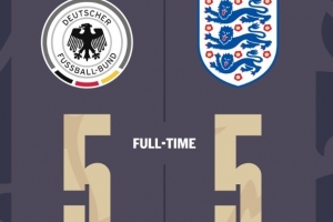 體育資訊6月18日訊 U19歐青賽B組上演了一場進球大戰,英格蘭U19對陣德國U19的比賽中,前者曾一度以1-5的比分落后,但他們上演了絕地反擊最終將比分扳成了5-5的平手。