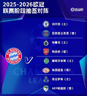 體育資訊8月29日訊 2025-26賽季歐冠聯賽階段抽簽揭曉,拜仁與巴黎將狹路相逢。