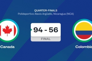 體育資訊8月29日訊 男籃美洲杯1/4決賽,加拿大男籃94比56大勝哥倫比亞男籃,晉級4強。